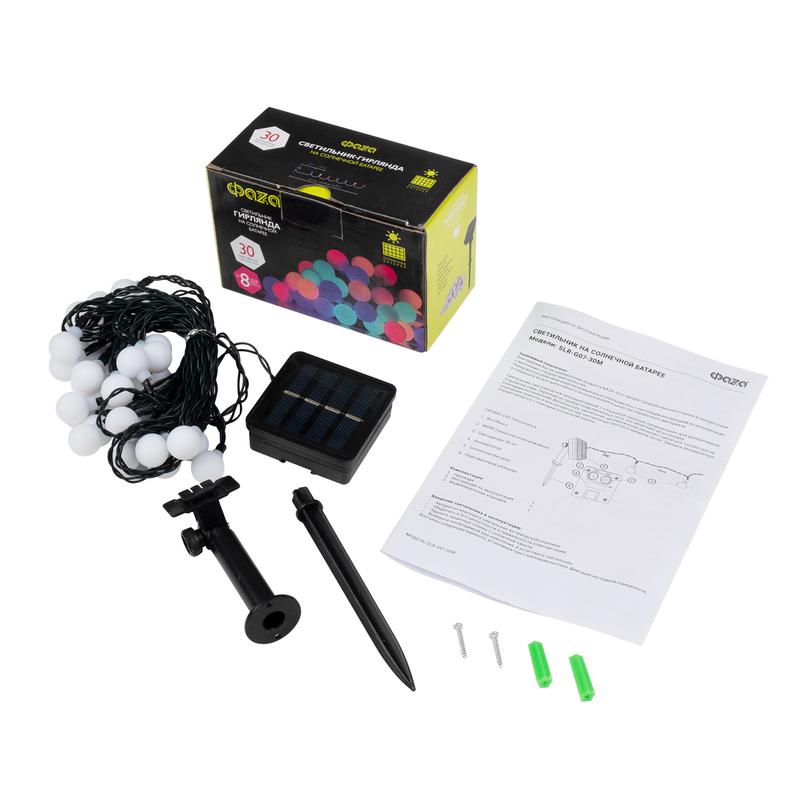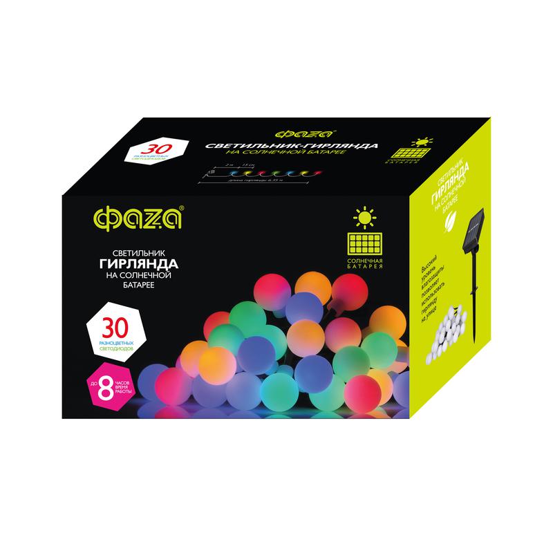 Светильник светодиодный SLR-G07-30M садовый; гирлянда матов. шарики мультицвет солнечная батарея | код. 5040847 | ФАZА