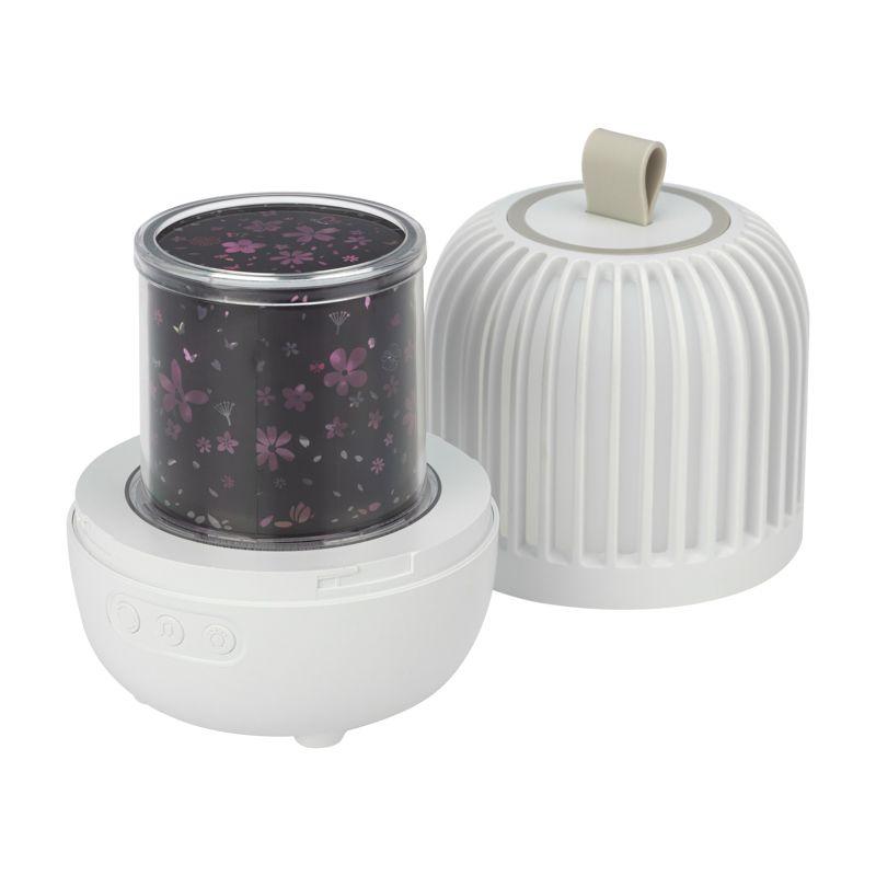 Светодиодный ночник-проектор с 3 сменными слайдами создает проекции с карточек на любые поверхности. Проектор оснащен вращающимся механизмом, который позволит наполнить комнату тематическими картинками: Вселенная/Морская/Цветущая вишня. Проектор обладает