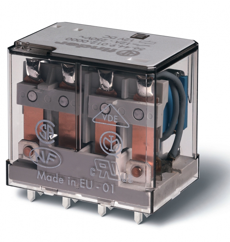 Миниатюрное силовое электромеханическое реле, монтаж на печатную плату, 4CO 12A, контакты AgSnO2, катушка 230В AC, степень защиты RTI, опции: нет | код 564482304000 | FINDER