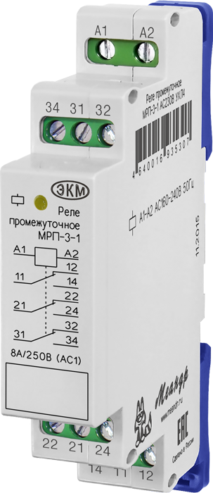 Промежуточные реле МРП-3-1 ACDC24В УХЛ2 на ДИН рейку, низкотемпературное исполнение до -40 С, влажность до 75% при +15 С МЕАНДР | код 4640016930951 | МЕАНДР