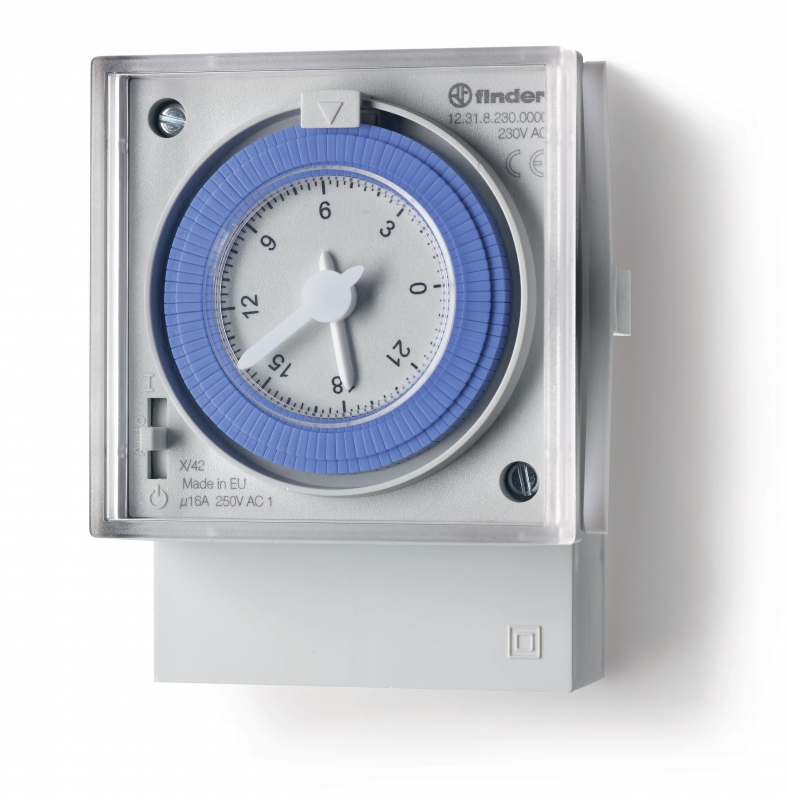 Реле времени механическое суточное, монтаж на панель, 1СO 16A, питание 120...230В АC, резервн.источник питания, степень защиты IP20, упаковка 1шт. | код 123182300000PAS | FINDER