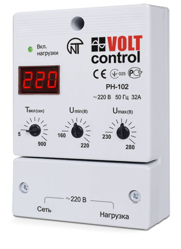Однофазное реле напряжения РН-102, 32А, 220В, настенный монтаж, индикация напряжения. | код 3425600102-0 | Новатек-Электро