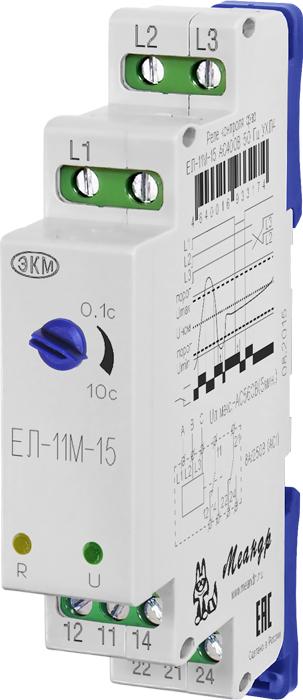 Реле контроля трехфазного линейного напряжения ЕЛ-11М-15 AC127В УХЛ4, защита источников и преобразователей электрической энергии, задержка срабатывания 0.1 - 10 сек, корпус 1 модуль (1 шт.) МЕАНДР | код 4640016934300 | МЕАНДР