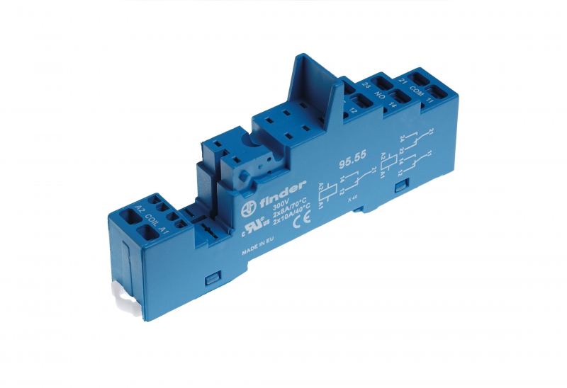 Розетка с безвинтовыми клеммами (пружинный зажим) для реле 40.51, 40.52, 40.61, 40.62, применяются модули 99.02, 86.30, в комплекте металлическая клипса 095.71, версия: синий цвет | код 9555SMA | FINDER