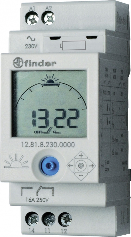 Реле времени цифровое ASTRO, монтаж на рейку 35мм, 1СO 16A, питание 110…230B AC/DC, ширина 35мм, степень защиты IP20, упаковка 1шт. | код 128182300000PAS | FINDER