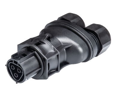 Сплиттер, розеточный разъем на кабель диам. 6-10 мм, IP68(69k), 3 полюса, пружинная фиксация провода, номинальные характеристики: 250/400V, 20A, цвет: черный, серия RST Classic | код 96.031.0253.1 | Wieland