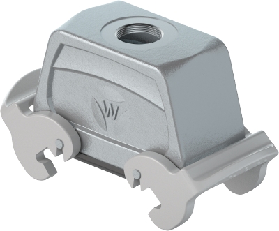 Крышка на кабель, разъема REVOS, Size 24, с уплотнителем, с двумя защелками, 1 отверстие с резьбой для кабельных вводов M32x1,5, с верхним расположением, материал корпуса: алюминиевый сплав | код 70.374.2435.1 | Wieland