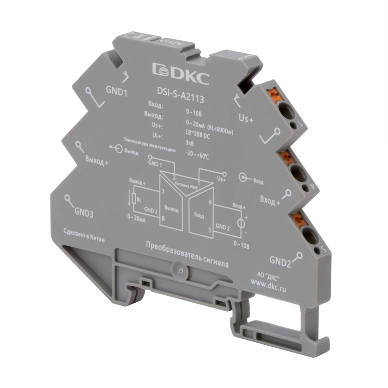 Преобразователь сигнала DSI, 6,2 мм 1 вход 0…10 В, 1 выход 0…20 мА | код DSI-S-A2113 | DKC