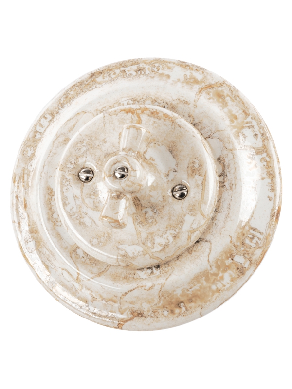 Выключатель скрытой установки фарфоровый поворотный 2-кл. с ручкой (бантик) 10А мраморный «Болонь» T | код SQ1820-0112 | TDM