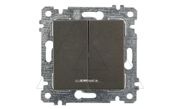 Rita - Выключатель двухклавишный с подсветкой, пруж. зажимы, дымчатый | код 2200-426-0195 | Mutlusan