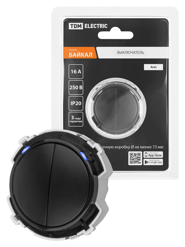Выключатель 2-кл. 16А 250В кнопочный механизм агат, Байкал TDM | код SQ1819-0224 | TDM
