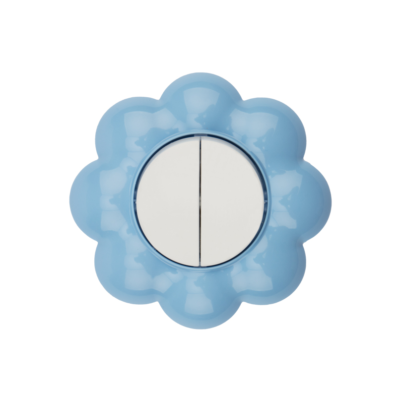 Выключатель двухклавишный KRANZ HAPPY Цветок скрытой установки, белый/голубой | код KR-78-0627 | KRANZ