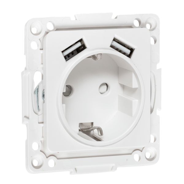 Стокгольм Механизм Розетки 1-местной с/з, USB 2A 16А винтовые клеммы белый с защ. штор. EKF | код EYR16-2USB-typeA | EKF