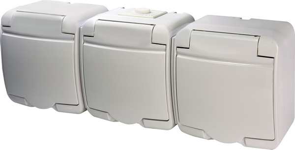 Розетка 3-я (Schuko) (белая крышка) (IP44/54) RHE-3s | код 004668023 | ETI
