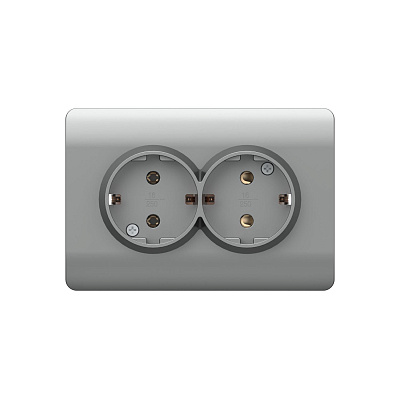 (NEW3-E) Розетка с/з со шторками двойная, 16А, серебряный | код 431419 | CHINT