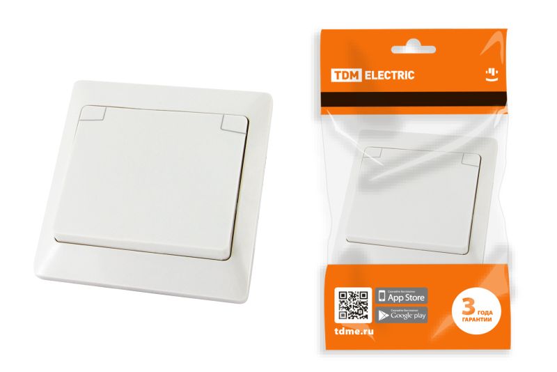 Розетка 2П+З с защ. шт. и крышкой 16А 250В IP44 белая Ильмень TDM | код SQ1823-0017 | TDM