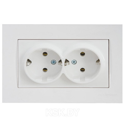 Rita - Розетка двойная 2x2P+E, (в комплекте с рамкой), белый | код 2220-202-0201 | Mutlusan