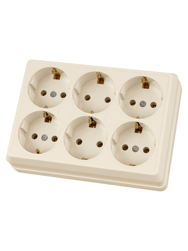 Розетка шестиместная 2П+3 открытой установки IP20 16A сл.кость Ладога TDM | код SQ1801-0246 | TDM