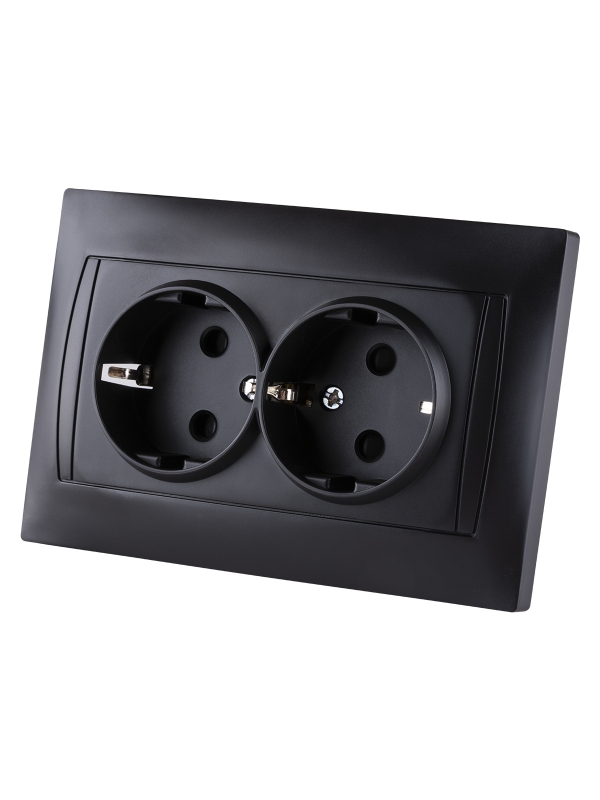 Розетка двойная 2П+З 16А 250В с защ. шт. графит Лама TDM | код SQ1815-0613 | TDM