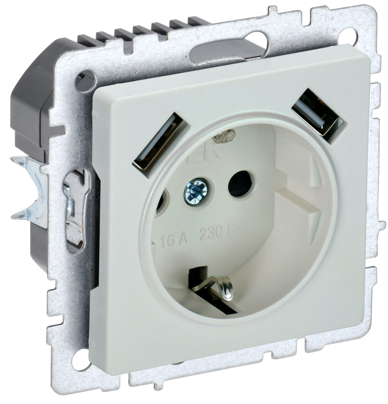 BRITE Роз. с з/к/ш 16А с USB A+A 3,1А РЮш10-2-БрЖ жемч. IEK | код BR-R14-16-U21-D31-K36 | IEK