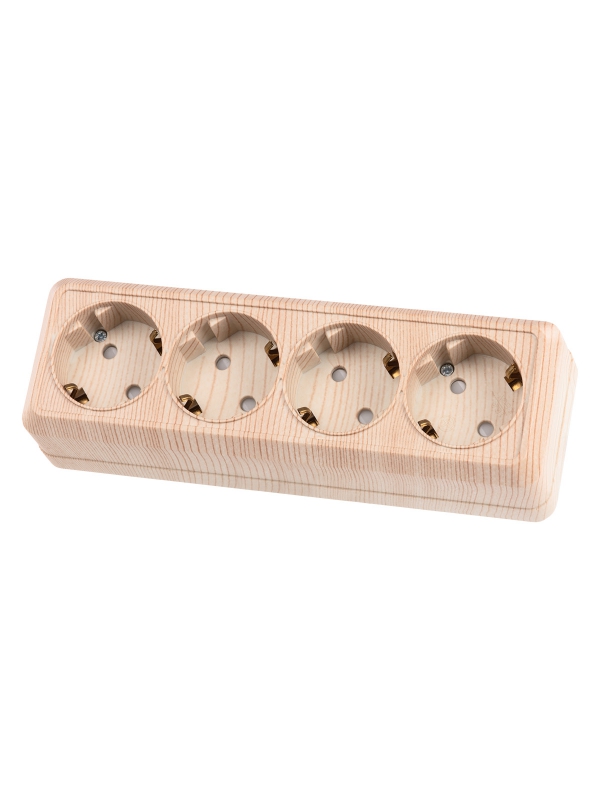 Розетка 4-х местная горизонтальная 2П+3 открытой установки IP20 16A с з/ш сосна Ладога TDM | код SQ1801-0431 | TDM