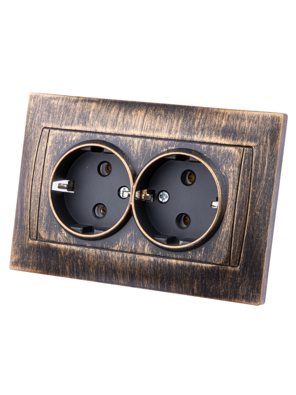 Розетка двойная 2П+З 16А 250В старинная бронза Лама TDM | код SQ1815-0766 | TDM