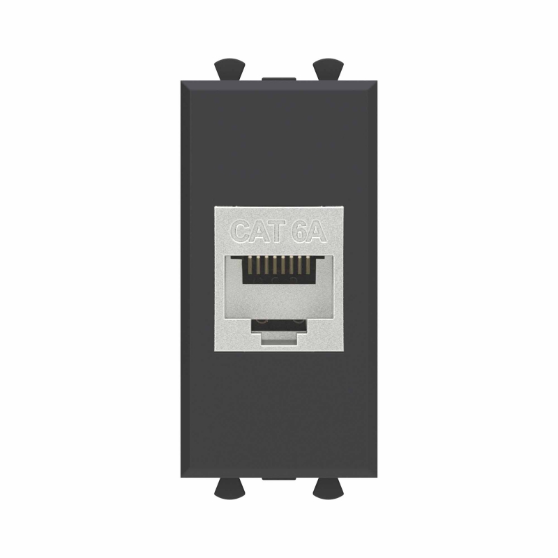 Компьютерная розетка RJ-45 без шторки модульная, кат.6А экранированная, Avanti, Черный матовый, 1 модуль | код 4412771 | DKC