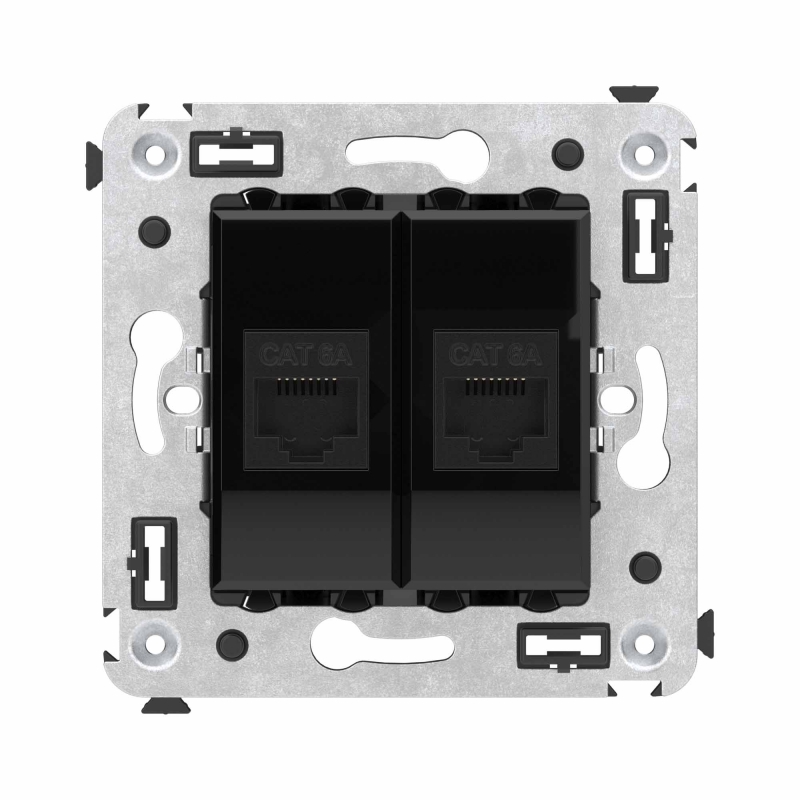 Компьютерная розетка RJ-45 без шторки в стену, кат.6А двойная, Avanti, Черный квадрат | код 4402674 | DKC