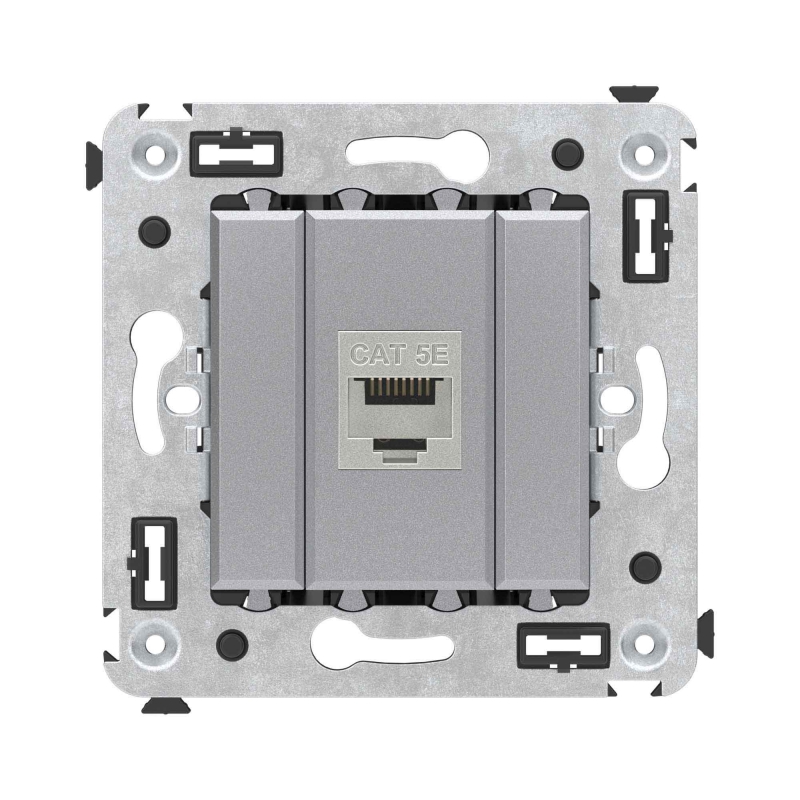 Компьютерная розетка RJ-45 без шторки в стену, кат.5e одинарная экранированная, Avanti, Закаленная сталь | код 4404763 | DKC
