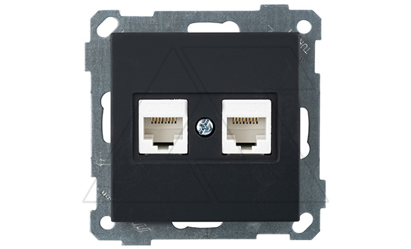 21 - Розетка 2хRJ-45 кат. 5e UTP, черный мат | код 2100-138-0184 | Mutlusan