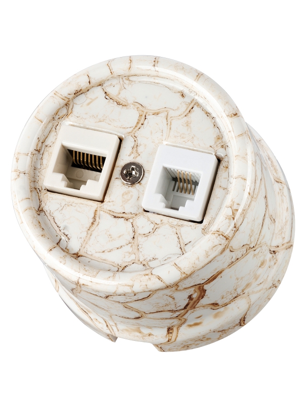 Розетка телефонная RJ11 + компьютерная RJ45 мраморная «Болонь» TDM | код SQ1820-0152 | TDM