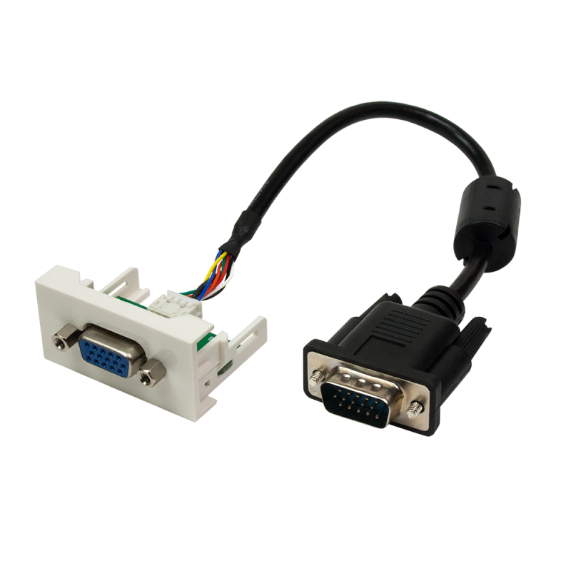 Вставка Mosaic 22.5x45 с адаптером VGA D-SUB (HDB-15) мама, со шнуром 3 м папа, белая | код LAN-WA-LP-VGA-FM-3.0 | LANMASTER