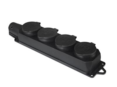 Розетка четырехместная с заглушками каучук 2Р+РЕ 16А 220В IP44 HLT | код 083-05-06 | HLT