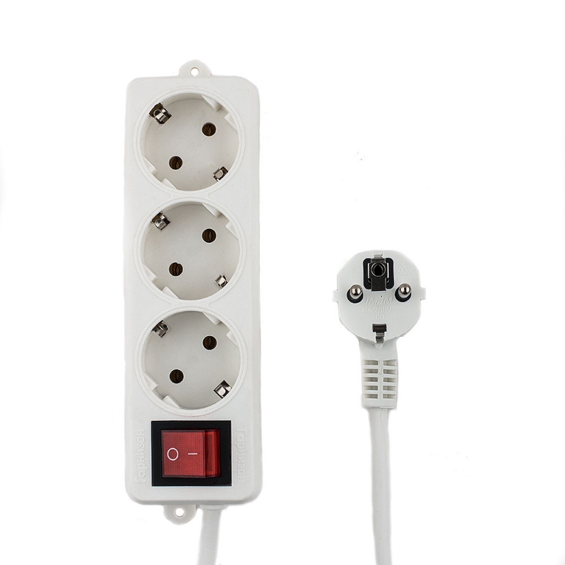 Удлинитель Гарнизон ELB-G3-W-2, 3 евророзетки с выключателем и заземлением, допустимый ток 16А, длина 2м. | код ELB-G3-W-2 | Гарнизон