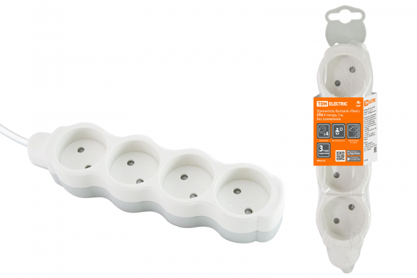 Удлинитель бытовой Люкс УЛ4 4 гнезда, 1,5м, б/з, с з/ш, ПВС 2х0,75 мм2 10А/250В бело-серый TDM | код SQ1303-0226 | TDM