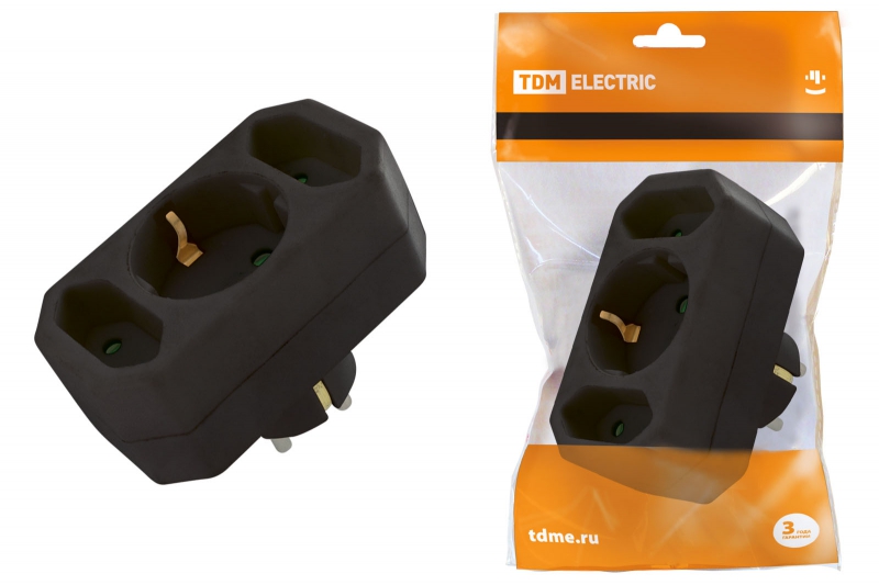Блок на 3 гнезда: 1x2П+3 16 А + 2х2П 2,5 А под плоскую вилку 250 B черный TDM | код SQ1806-0301 | TDM