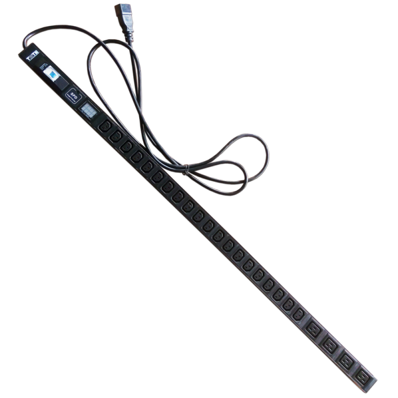 Блок розеток вертикальный, 1-фазный с автоматом, A/V-метр, 16A / 250V, 4xC19 + 20xC13, шнур 3.0 м, разъем C20 | код TWT-PDVI-4C9-20C3-C0 | TWT
