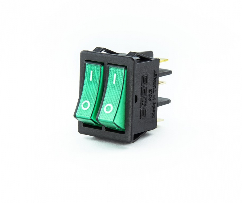 Выключатель в чёрном корпусе две зелёные клавиши с подсветкой1НО+1НЗ | код A12B1Y11 | EMAS