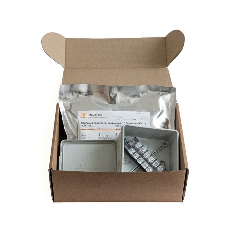 Коробка распределительная двухкомпонентная (HF) в комплекте с компаундом и с 6-кл. зажимами, сечение до 2,5 мм?, 100х100х50 серая Промрукав | код PR80.0178 | ПРОМРУКАВ