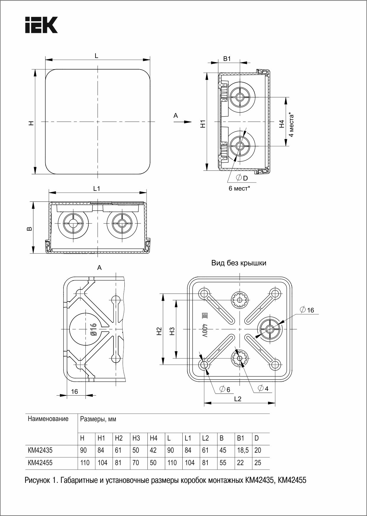 Коробка расп. КМ42455 о/п 100х100х50мм IP67 8 вв. серая IEK | код UKO21-100-100-050-K41-66 | IEK