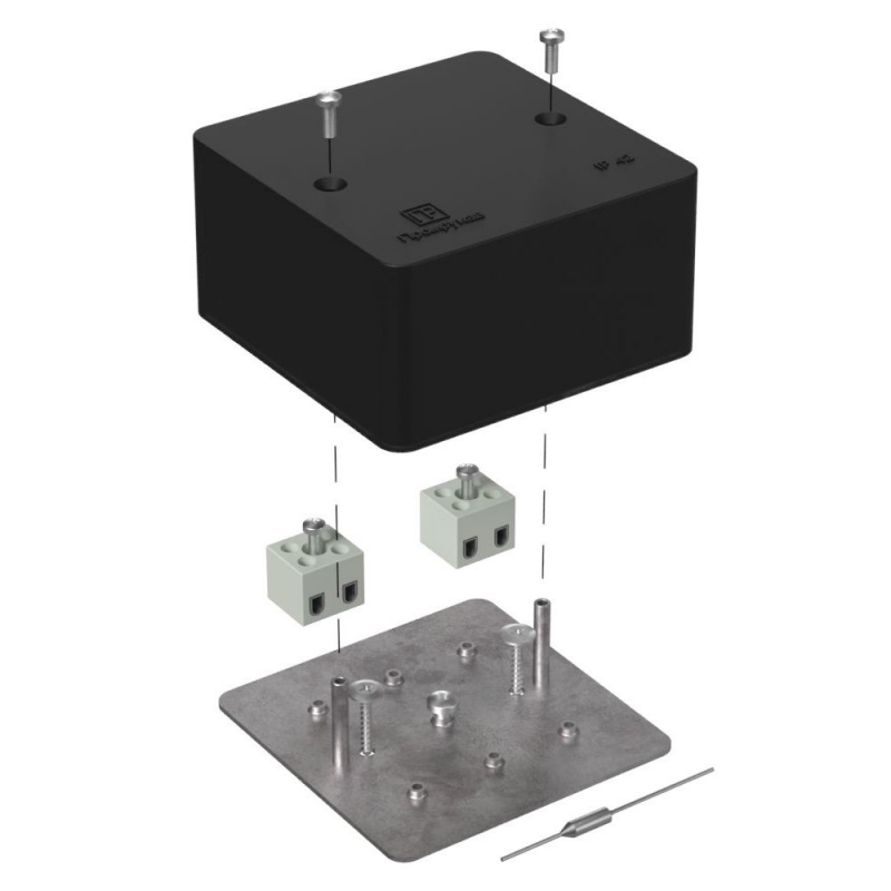 Коробка огнестойкая для кабель-канала 40-0460-FR2.5-4-П Е15-Е120 с термопредохранителем RAL9005 85х85х45 (44 шт/кор) Промрукав | код 40-0460-9005-FR2.5-4-П | ПРОМРУКАВ