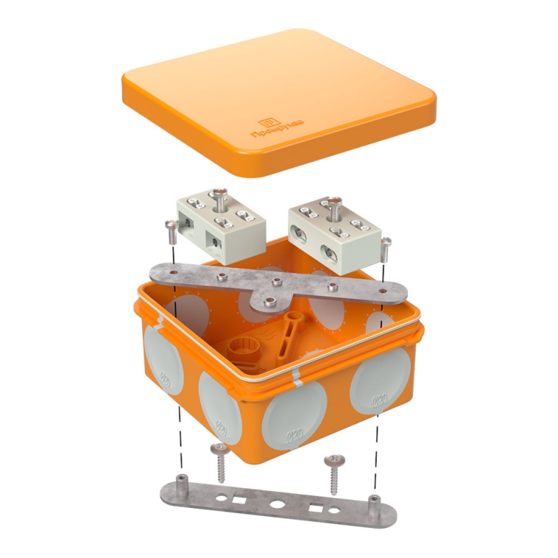 Коробка огнестойкая разветвительная для о/п двухкомпонентная 60-0210-FR6.0-4-4-Р Е15-Е60 RAL2004 80х80х40 (44 шт/кор) Промрукав | код 60-0210-FR6.0-4-4-Р | ПРОМРУКАВ
