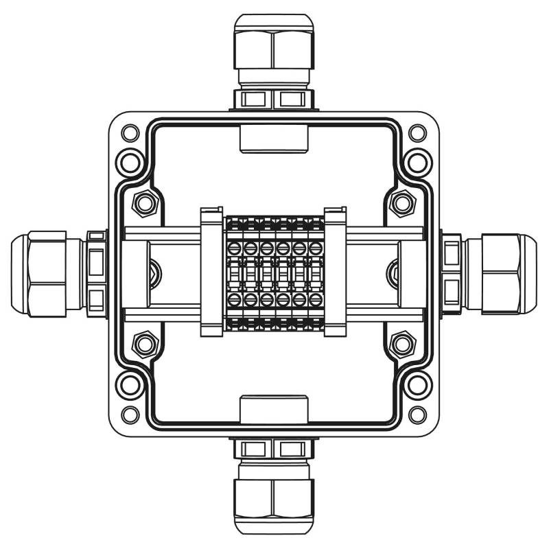 Взрывозащищенная клеммная коробка из полиэстера TBE-P-03-(6xCBC.4)-1xPACMP(A)-1xPACMP(B)-1xPACMP(C)-1xPACMP(D)1Ex e IIC Т5 Gb / Ex t | код 1231.031.22.1222 | DKC