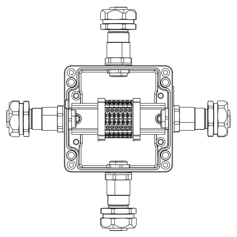 Взрывозащищенная клеммная коробка из алюминия TBE-A-12-(6xCBC.2)-1xKAEPM2MHK-20(A)-1xKAEPM2MHK-20(B)-1xKAEPM2MHK-20(C)-1xKAEPM2MHK-2 | код 1201.121.22.11A | DKC