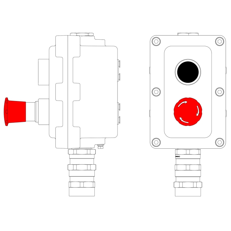 Взрывонепроницаемый пост управления из алюминия LCSD-02-B-MB-P1B(11)x1-P6R(11)x1-PBMB-KA2MHK / 1Ex d IIB T5 Gb / Ex tb IIIC T95°С Db | код LCSD21000059 | DKC