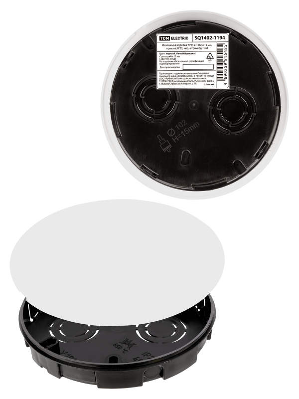 Монтажная коробка У194 СП D75х15 мм, крышка, IP20, инд. штрихкод TDM | код SQ1402-1194 | TDM