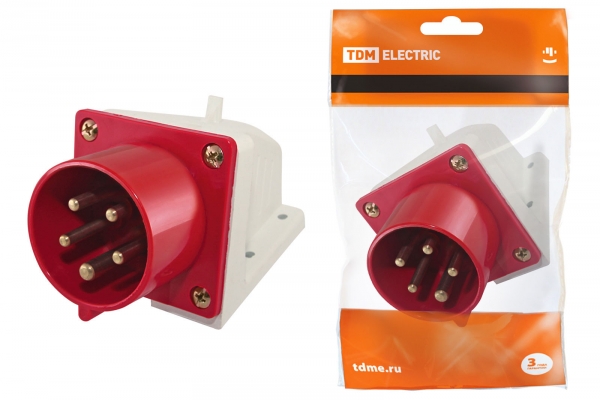 Вилка 525 стационарная 3Р+РЕ+N 32А 380В IP44 TDM | код SQ0605-0016 | TDM