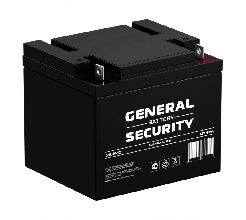 GSL40-12 Аккумуляторная батарея систем охраны и пожарной безопасности, напряжение: 12В, ёмкость: 40Ач, клеммы типа: F4, Размеры ДШВ: 199х166х171мм, вес: 12,6кг. Срок службы: до 8 лет. | код GSL40-12 | GENERAL SECURITY