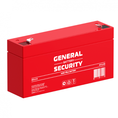 GS3.2-6 Аккумуляторная батарея систем охраны и пожарной безопасности, напряжение: 6В, ёмкость: 3,2Ач, клеммы типа: F1, Размеры ДШВ: 134х34х65мм, вес: 0,63кг. Срок службы: до 5 лет. | код GS3.2-6 | GENERAL SECURITY