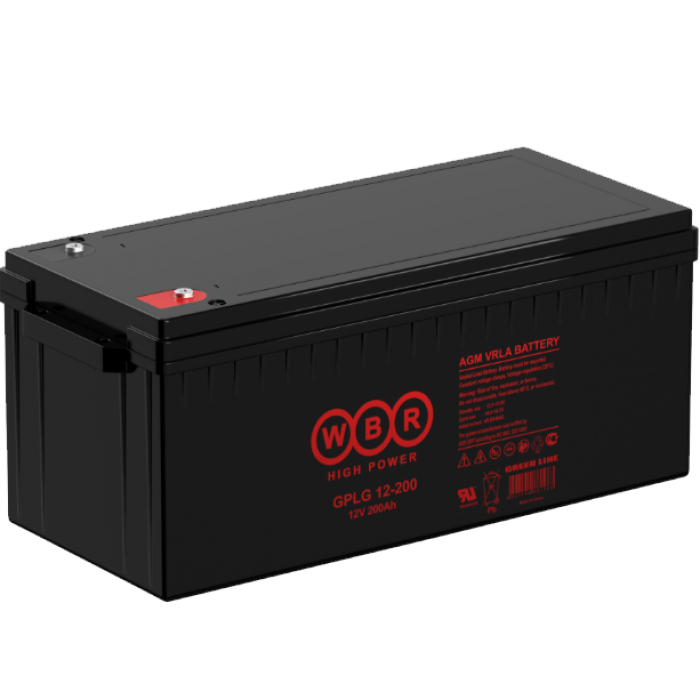 WBR GPLG12-200 Гелиевая аккумуляторная батарея для ИБП, напряжение: 12В, ёмкость: 200Ач, клеммы типа: Под внутренний болт М5, Размеры ДШВ: 522x238x222мм, вес: 62,5кг. Срок службы: 12 лет. | код WBR GPLG12-200 | WBR